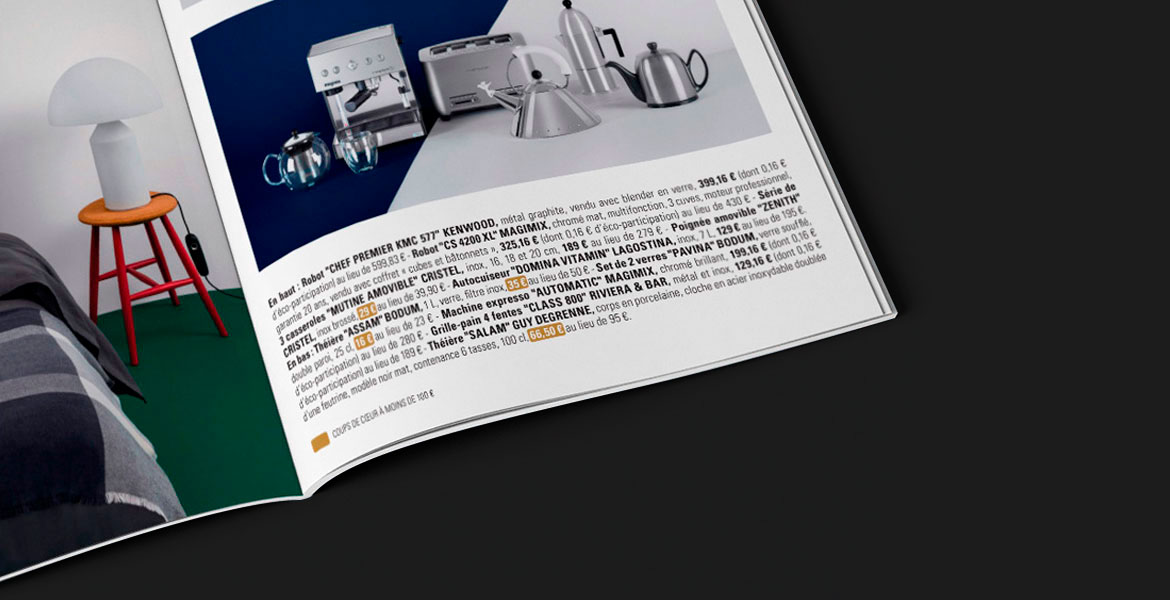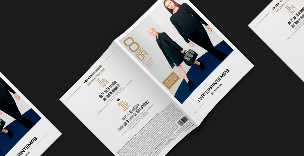 À l'occasion des 8 JOURS OR PRINTEMPS, il s'agissait de créer plusieurs catalogues de produits concernés par les offres promotionnelles du groupe Printemps. Les catalogues ont été déclinés en différents formats, différentes versions régionales, ainsi qu'en plusieurs langues distinctes.